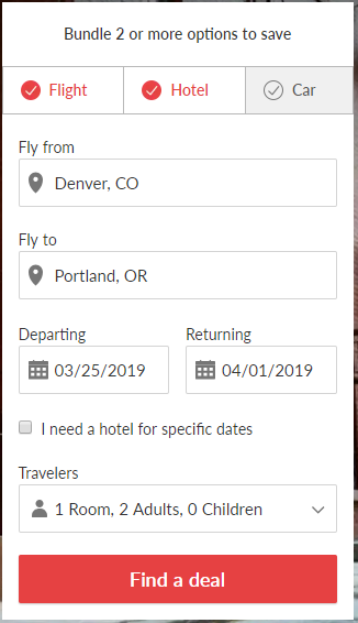 Hotwire offers great discounts by bundling multiple services in a "vacation package".