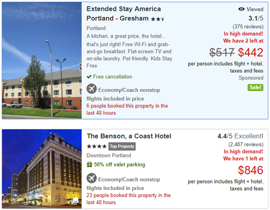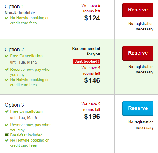 If you purchase a normal hotel booking through Hotwire, there are a number of packages to choose from. Here are some examples: