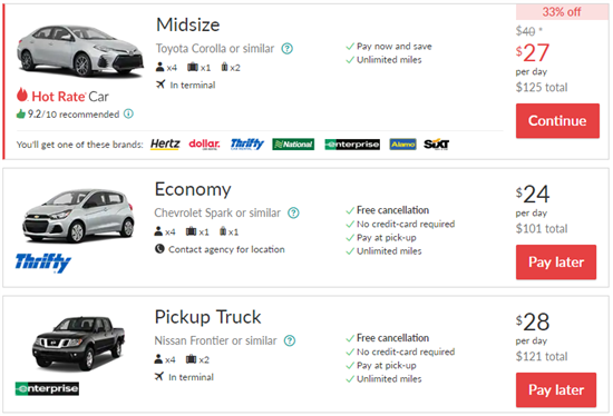 | Hotwire | $24 | $101 | Compact | Thrifty |