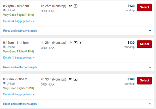 - You'll see a list of options for your trip. Filter these options using the controls on the left.